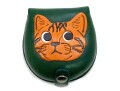 手に持つとコロンとおさまる本革製カラーコインケースに、かわいいアメショーを載せました。開くと小銭がふたの内側にたまる構造になっているので、取り出しやすく、便利です。 落ち着いた赤、緑、金茶の3色で展開しております。