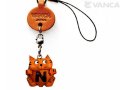 VANCA(バンカクラフト)「革物語」、プチイニシャル動物・ねこ。熟練した職人が一つ一つ手作りした本革携帯ストラップです。かわいい動物マスコットのおなかにはアルファベットの文字。お友達のイニシャルを選んでプレゼントにもどうぞ。
