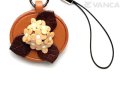 バンカクラフト「花シリーズ」本革携帯ストラップ。チューリップ、ばらなど6種類の上品なレザーのお花がプレートの上にあし