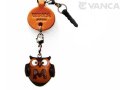 VANCA(バンカクラフト)「革物語」、スマホイニシャル動物・ふくろう。熟練した職人が一つ一つ手作りした本革イヤホンジャックアクセサリーです。かわいい動物マスコットのおなかにはアルファベットの文字。